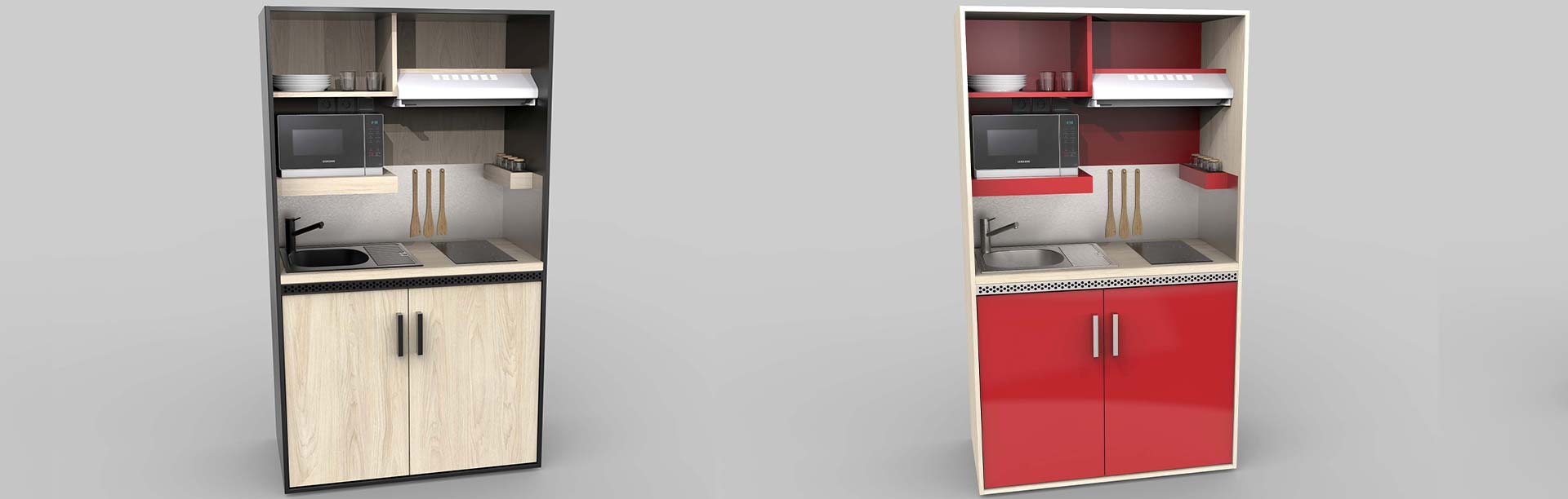 Nous réalisons des cuisinettes multifonctions pour les collectivités, les professionnels et les particuliers :